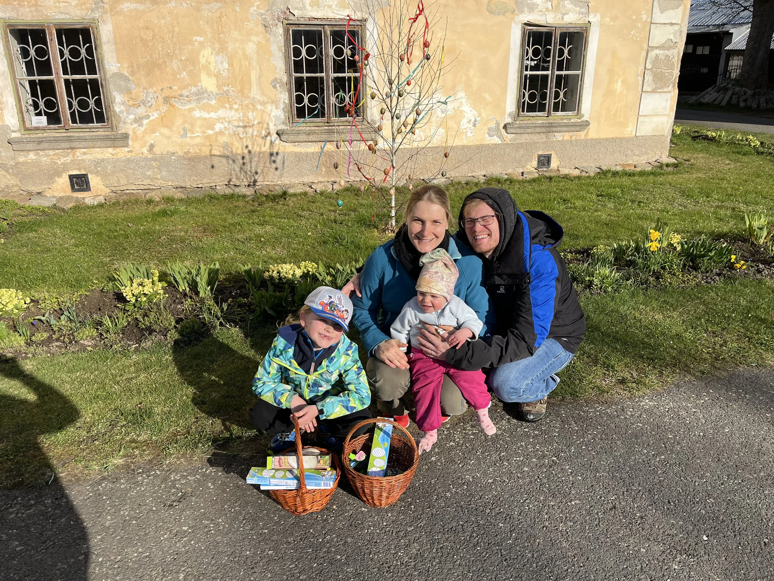Vítáme vás u nás, jmenujeme se Markéta a Michal Kaplanovi. Už jsme spolu zažili ledacos, ale tenhle životní kotrmelec zastínil všechno ostatní. V roce 2016 jsme koupili památku v ohrožení, která měla své nejlepší časy již dávno za sebou, a rozhodli se ji vrátit život. Tento krok z nás udělal kopáče, zedníky, zahradníky, ale i průvodce, amatérské historiky a archeology v jednom. Markéta svým elánem pohání nejen zámek, ale i jeho okolí. Po její prohlídce si možná nebudete pamatovat žádné datum, ale určitě si odnesete energii a nadšení, které z ní vyzařuje. Michal nejraději tráví čas při samotné obnově zámku. S neúnavnou trpělivostí objevuje zapomenuté poklady. Téměř vše, co v zámku původního uvidíte, doslova vyhrabal z pozůstatků minulosti.